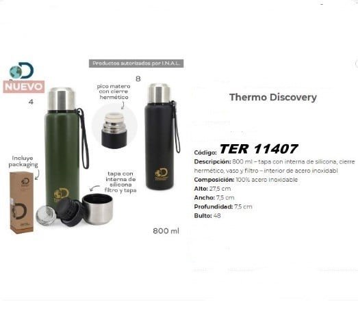TERMO TERMICO MULTIUSO DISCOVERY ADVENTURES FREE BPA DOBLE ACERO INOXIDABLE. IDEAL PARA SALIDA DE PASEO, CAMPING, CAMPAMENTOS, PESCA, CAZA DEPORTIVA, DEPORTES, ETC.