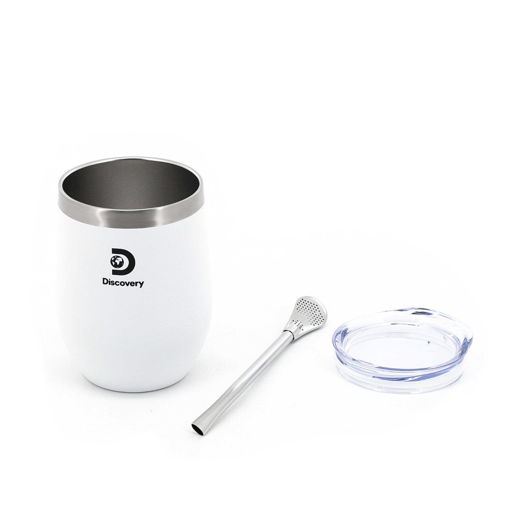 18497 – Mate C/Bombilla Discovery 350ml, Info: Tapa antiderrame, bombilla. Incluye packaging Composición: Acero Alto: 350ml +info+fotos