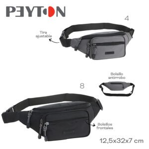 53532 – Riñonera Peyton ,+INFO+FOTOS Info: Tira ajustable, bolsillos frontales y antirrobo Composición: Nylon Alto: 15cm Ancho: 30cm Profundidad: 2cm
