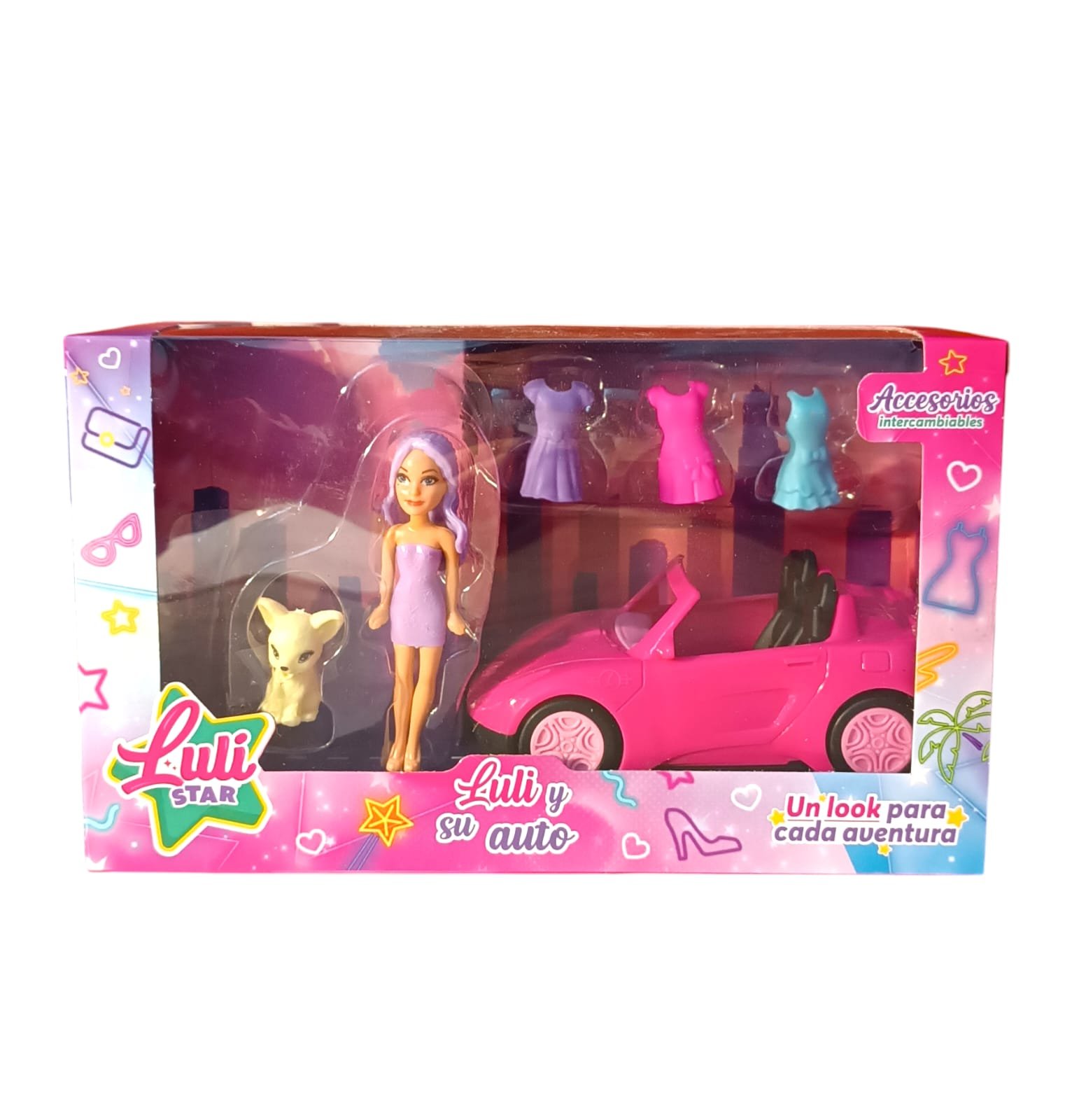 INGRESA AL MUNDO DE LULI STAR CON ESTE NUEVO SET. INCLUYE UNA MUNECA DE 9 CM DE ALTO . CADA SET INCLUYE TAMBIEN UN AUTO UNA MASCOTITA, 3 VESTIDOS . MEDIDAS DEL PACKAGING:22CM X13 CM X 9CM. MARCA: LULI STAR. + 3 AÑOS