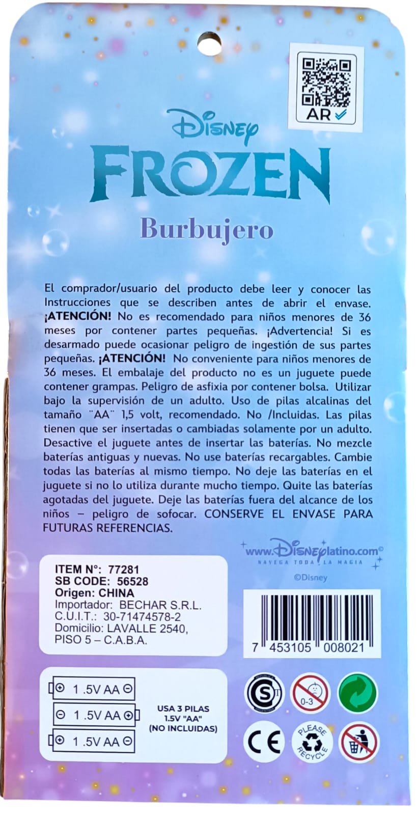 *56528- BURBUJERO DISNEY FROZEN LUZ A PILA 26X13X7 +INFO+FOTOS cantidad