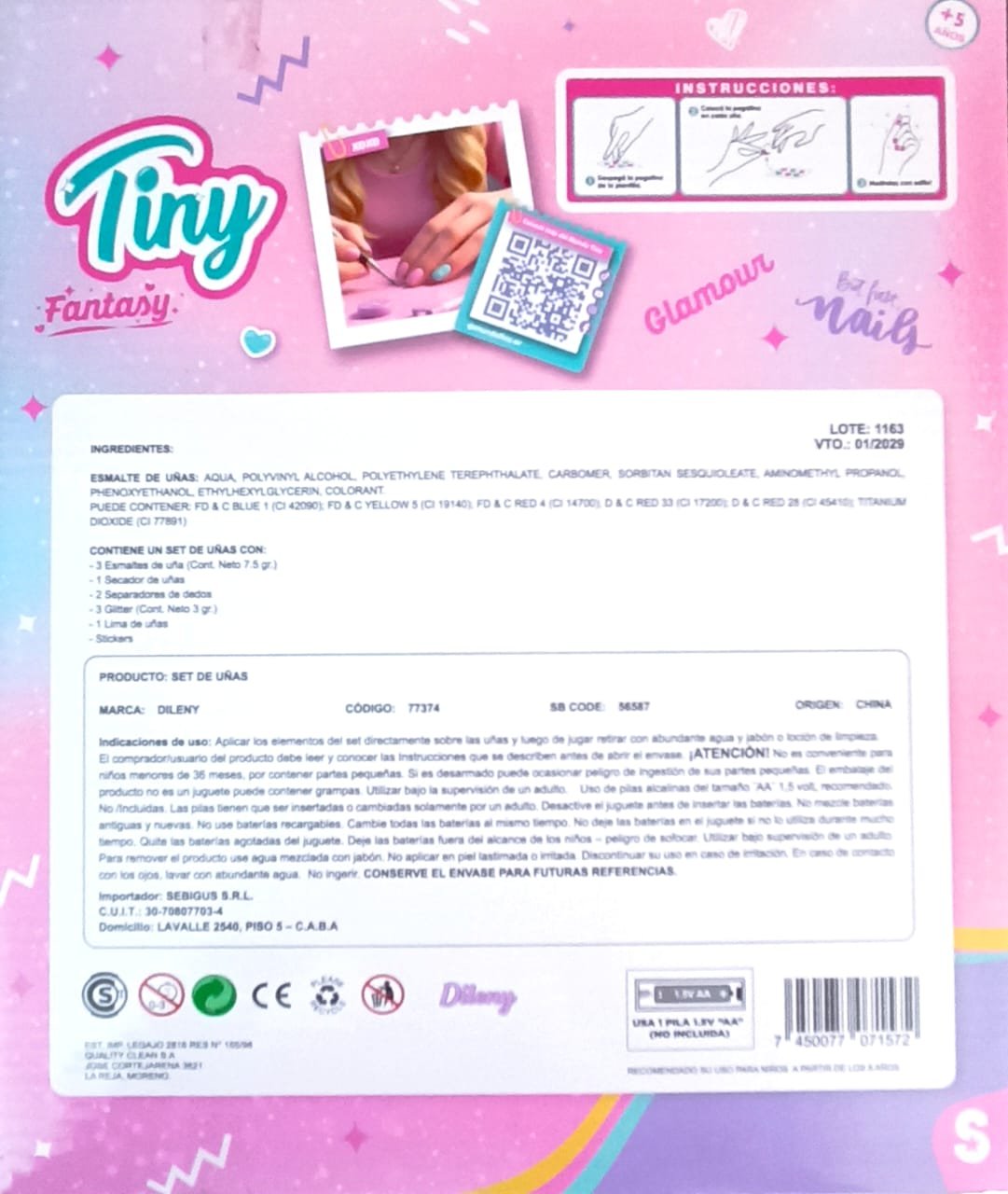 56587- SET DE UÑAS CON SECADOR TINY PILA 26X31X6 +INFO+FOTOS