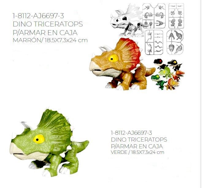 *60246 – DINOSAURIO TRICERATOPS P/ARMAR ESQUELETO y PIEL exterior MARRON VERDE EN CAJA +INFO+FOTOS