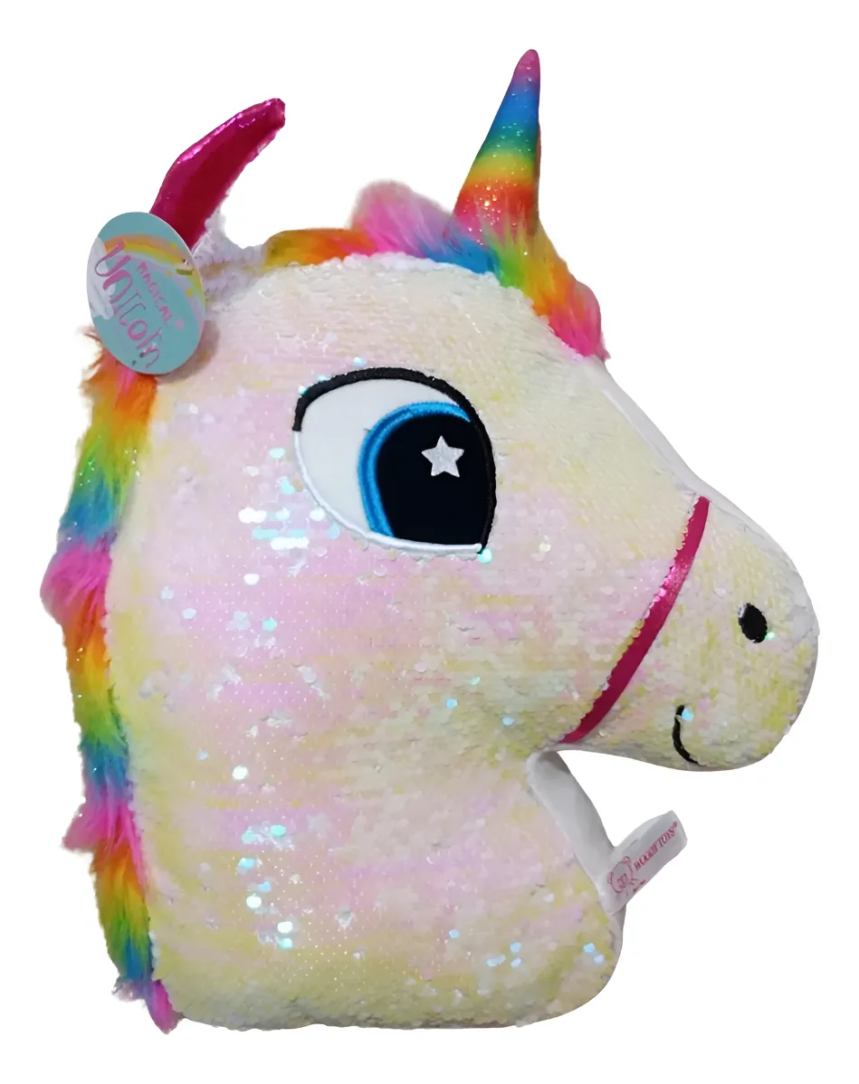 80169 - UNICORNIO ALMOHADON 14"=35cm LENTEJUELAS CAMBIA COLOR cantidad
